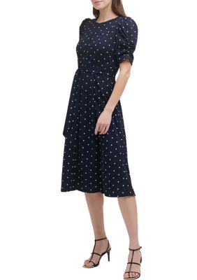 Dkny Women S Belted Dot Print Midi Scuba Dress Belk